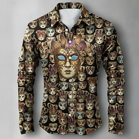 Herrenhemd mit venezianischem Karnevalsmotiv – Allover-Maskenmuster