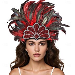 Karneval 2026 Rio Karneval Samba Accessoires Rote und Schwarze Federkopfbedeckung für Damen Mardi Gras Festival Tanzaccessoire Brasilien Festival Aufführung Kostüm