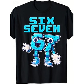 Baumwolle Kinder Jungen Schwarz Grafik Lustiger Slang 67 T-Shirt Bluse Rundhalsausschnitt Kurzarm Outdoor Alltagskleidung Mode Streetwear Designer Drucken Sommer
