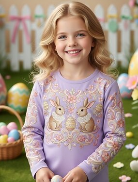 Ostern Mädchen 3D Grafik Kaninchen T-Shirt Langarm 3D-Druck Frühling Herbst Sport Mode Streetwear Kinder 4-12 Jahre Rundhalsausschnitt Lässig Täglich Outdoor Normale Passform