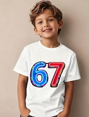 Baumwolle Kinder Jungen Schwarz Weiß Grafik Lustiger Slang 67 T-Shirt Bluse Rundhalsausschnitt Kurzarm Outdoor Alltagskleidung Mode Streetwear Designer Drucken Sommer