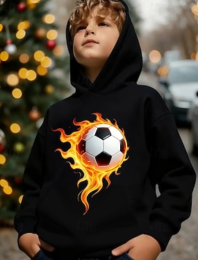 Unisex 3D Grafik Fußball Kapuzensweatshirt Pullover Langarm 3D-Druck Frühling Herbst Sport Mode Streetwear Kinder 4-12 Jahre Mit Kapuze Lässig Täglich Outdoor Normale Passform