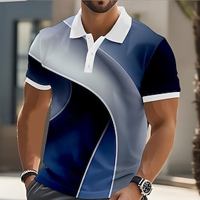 Herren Farbverlauf Geometrisch Poloshirts Kurzarm Polo-Shirts Hemden mit Kragen Lässig Athleisure Alltagskleidung 3D-Druck Knöpfe Atmungsaktives Gewebe Frühling & Sommer Blau Braun Grün