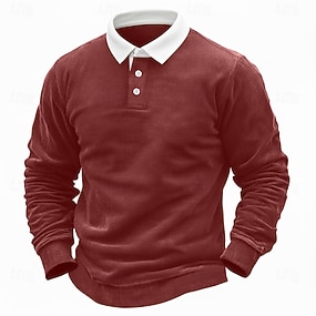 Herren Poloshirt Polo Pullover Casual Ausgehen Polo-Kragen Klassisch Langarm Sportbekleidung Brautkleider schlicht Feste Farbe Gestreift Knopf vorne Einfach Herbst Winter Schlank Schwarz Weiß Wein