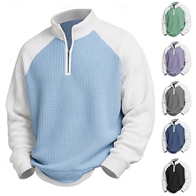 Herren Waffel-Poloshirts Polo Lässig Formell Gebänderter Kragen Langarm Mode Einfarbig Texture Knöpfe Rein Herbst Frühling & Herbst Herbst Winter Normale Passform Schwarz Hellgrün Marineblau Purpur