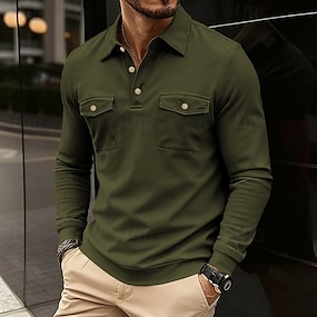Herren Golfshirt Golf Poloshirts Arbeit Lässig Revers Langarm Basic Modern Einfach Tasche Knöpfe Frühling Herbst Normale Passform Schwarz Weiß Wein Dunkelgrün Khaki Grau Golfshirt