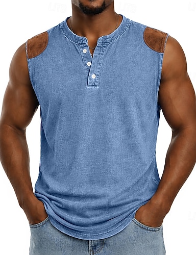 Herren Weste Jeans hemden Ärmellos Henley Sommer Frühling Einfach Mode Designer Sportlich Patchwork Stückgefärbt Verblasst Lässig Urlaub Straße Schwarz Hellgrün Rosa Top T-Shirt für Herren