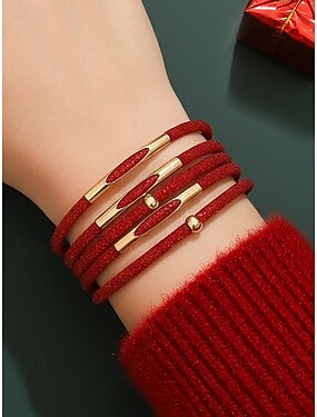 Weihnachtsrotes mehrlagiges Damenarmband mit goldenem Magnetverschluss, funkelnder Glitzer-Armreifschmuck für Feiertagspartys und festliche Outfits