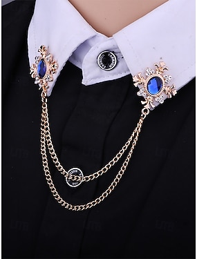 Vintage-Kragenkettenbrosche mit blauem Edelstein – elegante Anstecknadel mit Doppelkette für Männer und Frauen, Hemd- und Anzugaccessoire im gotischen viktorianischen Stil, formeller Hochzeits- und Partyschmuck