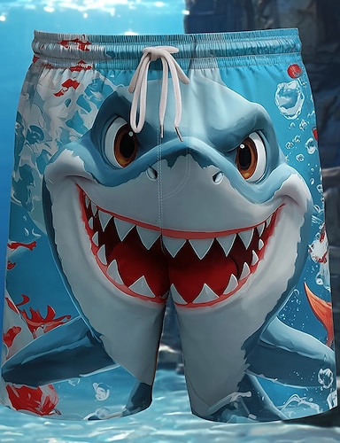 Herren Hai Lustig Comic-Tiere Badehosen Badeanzüge Badeshorts Boardshorts Mittlere Taille Hawaiianisch Strandurlaub Seitentaschen Netzfutter Elastischer Kordelzug in der Taille Designer Bekleidung