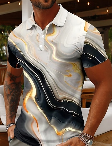 Herren Marmor Poloshirts Kurzarm Polo-Shirts Hemden mit Kragen Lässig Athleisure Alltagskleidung 3D-Druck Knöpfe Sommer Frühling Blau Grün Schwarz