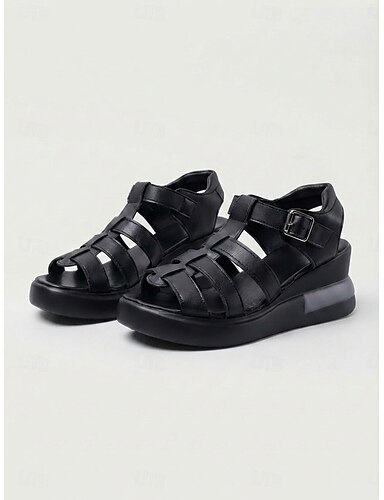 Schwarze Gladiator-Plateausandalen für Damen – verstellbarer Riemen im römischen Stil, leichte Keilsohle, bequemer Sommerschuh zum Spazierengehen und Reisen &Alltagskleidung