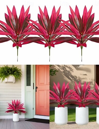 6 künstliche tropische Pflanzen, 17 Blätter, künstliche Bambus-Dracaena, für Innen- und Außendekoration, DIY-Blumenarrangements, Pflanzenwände, Garten, Terrasse und grüne Akzente