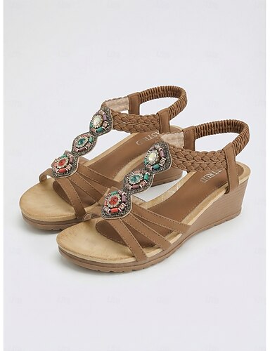 Braune Keilsandalen im Gladiator-Stil für Damen – Riemchensandalen mit offener Zehenpartie, bequemer Polsterung, leichte und modische Sandalen für Reisen, Spaziergänge und Strand &Alltagskleidung