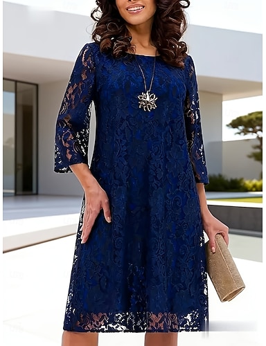 Damen Knielanges Kleid Spitzenkleid Partykleid Cocktailkleid Elegant Strand Party Hochzeit Normale Passform Einfach Halbarm V Ausschnitt Blau Rote Sommer Frühling