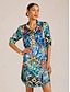 Damen Minikleid V-Ausschnitt Hemdkragen Chiffon Schwarz Blumendruck Elegant Casual Alltag Urlaub Frühling Herbst