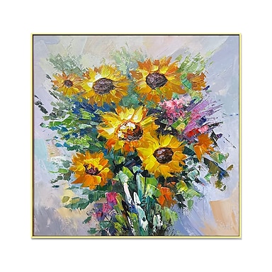 Handgefertigtes Ölgemälde auf Leinwand, Wandkunst, Dekoration, moderne Blumen, Sonnenblumen für Wohnkultur, gerollt, rahmenlos, ungedehnt