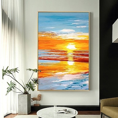 Handgefertigtes, handgemaltes Ölgemälde, Wandkunst, Ozean, Sonnenuntergang, Landschaft, Heimdekoration, Dekoration, gerollte Leinwand, kein Rahmen, ungedehnt