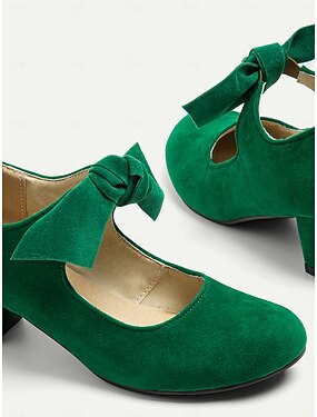 Grüne Mary-Jane-Schuhe aus Wildleder für Damen mit Schleifendetail – perfekt fürs Büro, den Alltag und besondere Anlässe