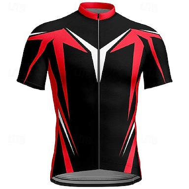 Herren Radtrikot Geometrisch Kurzarm Fahhrad T-Shirt Oberteil mit 3 Gesäßtaschen Mountainbike MTB Straßenradsport Schnelltrocknend Frontreißverschluss Feuchtigkeitsableitend Sport Rot Bekleidung