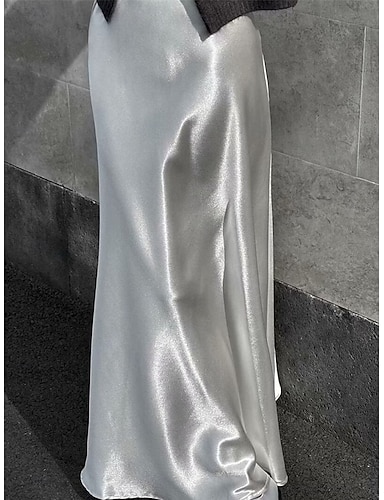 Damen Satinröcke Elegant Vintage Mode Glitzern Maxi Hohe Taille Röcke Einfach Gerafft Patchwork Unelastisch Täglich Büro / Karriere Blau Asche Amethyst Schwarz Sommer Spandex Satin