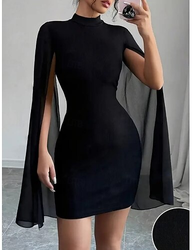 Damen Minikleid schwarzes kleid Freizeitkleid Elegant Mode Modern Outdoor Urlaub Ausgehen Schlank Einfach Langarm Rollkragen Blau Schwarz Rote Sommer Frühling