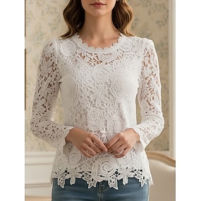 Damen Hemd Bluse Spitzentops Spitze Einfach Vintage Klassisch Lässig Langarm Rundhalsausschnitt Normale Oberteile Täglich Ferien Ausgehen Blau Schwarz Weiß Rosa Wein Frühling Herbst