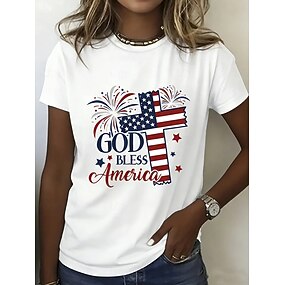 Unabhängigkeitstag Patriotisches Damen T-Shirt Druck Grafik Buchstaben Amerikanische Flagge Stylisch Klassisch Lässig Kurzarm Rundhals Reguläre Oberteile Täglicher Blau Schwarz Weiß Sommer Frühling