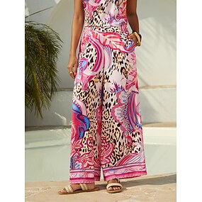 Satinhose mit weitem Bein und geometrischem Blumenmuster für den lässigen Urlaub