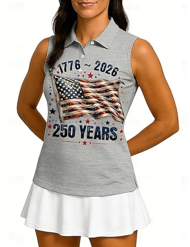 Tag der Unabhängigkeit Amerikas 250. Jahrestag Damen Grafik Nationalflagge Sportshirt Tennis-Poloshirts Tanktops Ärmellos Elastisch Schweißableitend Atmungsaktiv Tennis Golfspiel Pickleball Hemdkragen