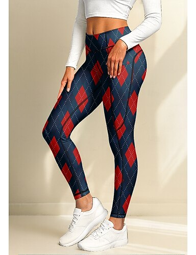 Damen Pilates-Leggings Fitnesshose Trainingsleggings Taschen Stempelsteuer Seitentaschen Pilates Fitnessstudio Fitnesstraining Hosen Strumpfhosen Leggings Karomuster Rot Sport Sportkleidung Dehnbar