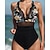 Damen Anti UV Shirt Badeanzug Bademode Blumenmuster Bedruckt Frontreißverschluss Schnelltrocknend Leicht Atmungsaktiv Langarm Bodysuit Badeanzug Surfen Strand Wassersport Sommer