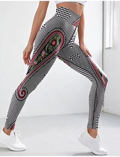 Damen Sport Leggings Gym Sport leggings Yogahose Elasthan Schwarz Kurz geschnittene Leggings Paisley-Muster Bauchkontrolle Kolbenheber Kleidung Yoga Fitness Fitnesstraining Laufen / Hochelastisch