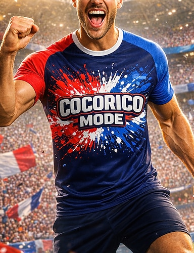 Unisex Geometrisch Frankreich Fußball-Sommer Global Match Pullover-Oberteile Trainingshemd Laufshirt Sommer Farbblock Kurzarm UPF 50 Schnelltrocknend Atmungsaktiv Leger Laufen Joggen Fitness Blau