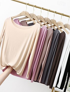Damen T Shirt Einfach Mode Stilvoll Basic Langarm Rundhalsausschnitt Normale Oberteile Täglich Wochenende Schwarz Weiß Rosa Khaki Beige Sommer Frühling Herbst