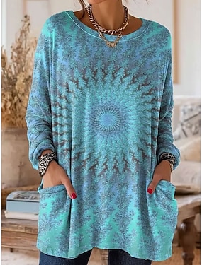 Damen Tunika Grafik Paisley-Muster Mandala Vintage Stilvoll Klassisch Langarm Hemdkragen Normale Oberteile Täglich Sport Ausgehen Blau Sommer Frühling Herbst