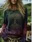 Damen Boho-Hemd T Shirt Druck Grafik Bohemien Vintage Lässig Langarm Rundhalsausschnitt Normale Oberteile Täglich Wochenende Urlaubskleidung Grün Sommer Frühling Herbst