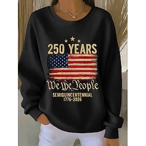 Unabhängigkeitstag Amerikanisches Jubiläum Patriotischer Damen Pullover Grafik Buchstabe Warm Klassisch Lässig Langarm Crew-Neck Lässig Zuhause Straße Print Blau Schwarz Rot Frühling Herbst Winter