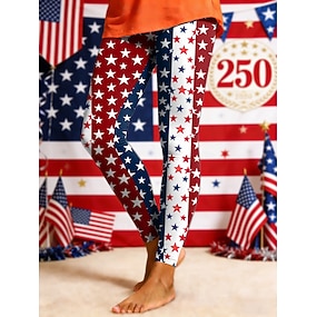 Damen Hosen Hose Leggings Urlaub Streetwear Basic Volle Länge Hohe TaillePantsAmerikanischer Unabhängigkeitstag Grafik Amerikanische Flagge Elastischer Bund Druck Komfort Atmungsaktivität Bequem Hohe