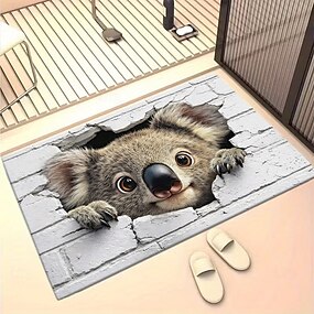 Fußmatte mit 3D-optischer Illusion, 2D-Flachdruck, niedlicher Koala, der durch eine rissige Backsteinmauer lugt, Tiermotiv, Eingangsteppich