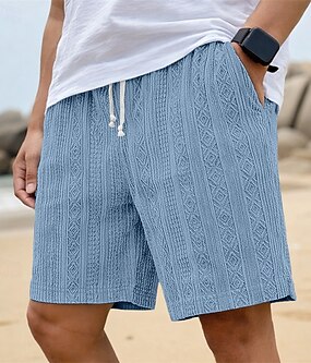 Herren Shorts Leinenshorts Sommershorts Strandshorts Kordelzug Elastischer Bund Geometrisch Einfach Komfort Atmungsaktiv Knielang Outdoor Täglich Strand Urlaub Mode Blau