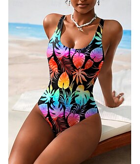 Damen Badeanzug Einteiler Slips Bademode Strandbekleidung Sommer Grafik Tropisch U-Ausschnitt Ärmellos Badeanzüge
