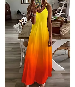 Damen Maxikleid Sommerkleid A Linie Kleid Unterkleid Urlaub Lässig Boho Strand Lässiger Schnitt Ombre Grafik Ärmellos V Ausschnitt Blau Orange Amethyst Sommer Frühling