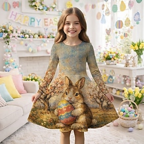 Ostern Mädchen' 3D Grafik Kaninchen Kleid Langarm 3D-Druck Frühling Herbst Täglich Urlaub Party Lässig Prinzessin Schön Kinder 4-12 Jahre Freizeitkleid A Linie Kleid Knielang Normale Passform