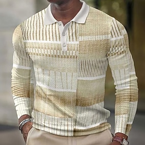 Herren Farbblock Geometrisch Waffel-Poloshirts Langarm Polo-Shirts Hemden mit Kragen Business-Casual Geschäft Büro-Outfit Alltagskleidung Knöpfe Frühling Herbst Winter Weiß Leicht Braun Braun