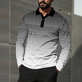 Herren Geometrisch Polo Langarm Polo-Shirts Revers Business-Casual Outdoor Geschäft Alltagskleidung 3D-Druck Knöpfe Frühling Herbst Schwarz-Weiß