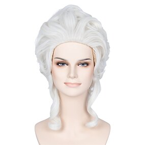 Weiße Victoria Perücke für Rokoko Barock Kostüm 18. Jahrhundert Barock Perücke Haar Flauschiger Vintage Bienenkorb Silberne Königin Hof Perücke Hitzebeständige Frauen Karnevals Party Kleid Kostüm