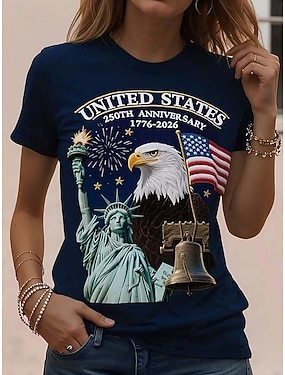 Unabhängigkeitstag Amerikanisches Jubiläum Patriotisches Damen T-Shirt Grafik Nationale Flagge Vintage Stilvoll Klassisch Kurzarm Rundhals Täglicher Wochenenddruck Schwarz