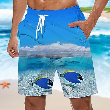 Herren Grafikdrucke Fisch Badehosen Badeshorts Boardshorts Mittlere Taille Mode Streetwear Lässig Outdoor Täglich Ferien Tasche Kordelzug Elastischer Bund Designer Bekleidung