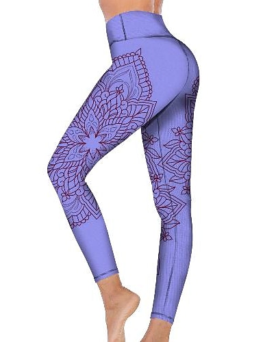 Damen Yogahose Po-Lifting Bauchkontrolle Hohe Taille Fitnesstraining Laufen Fitness Strumpfhosen Leggings Blumenmuster Purpur Herbst Winter Sport Sportkleidung Hohe Elastizität